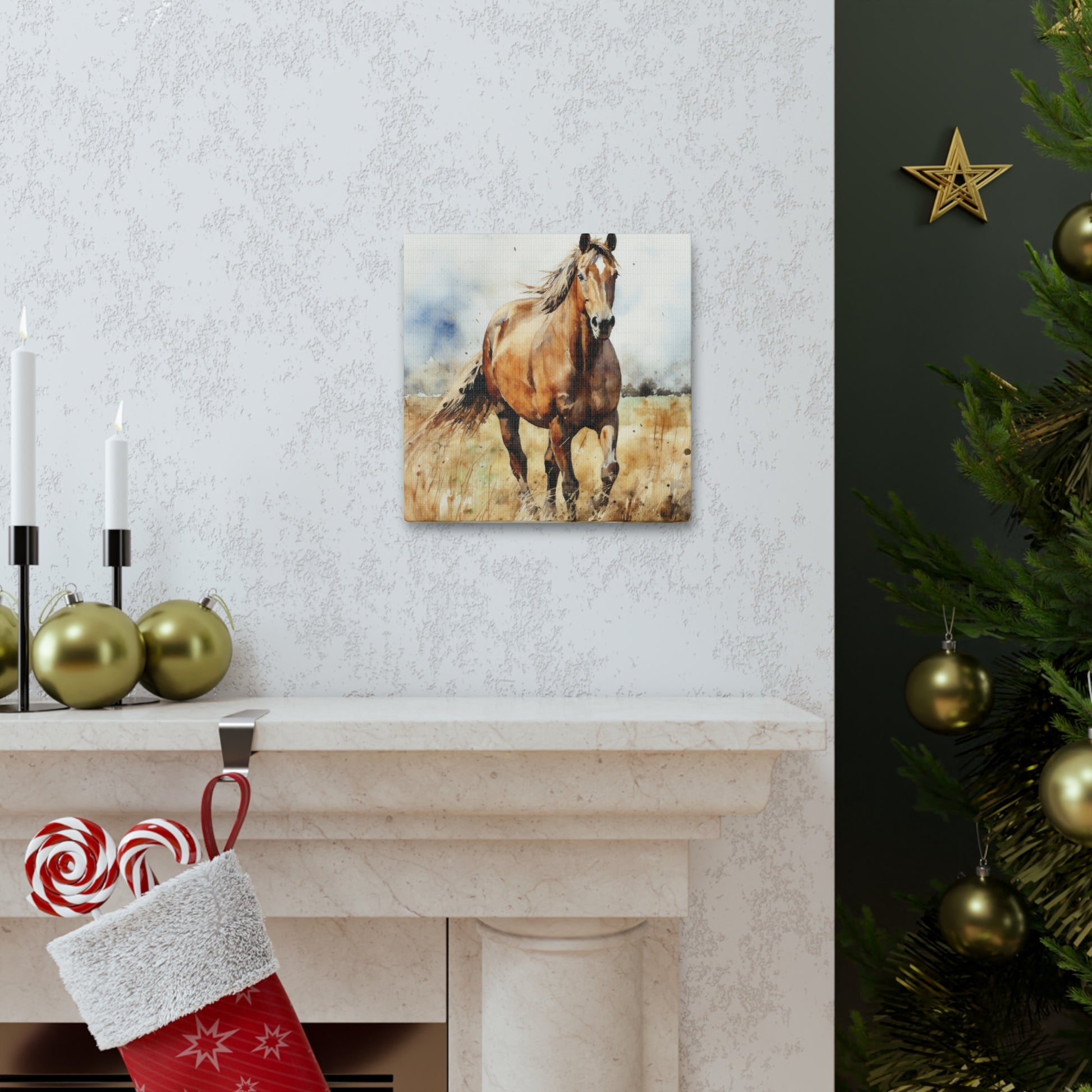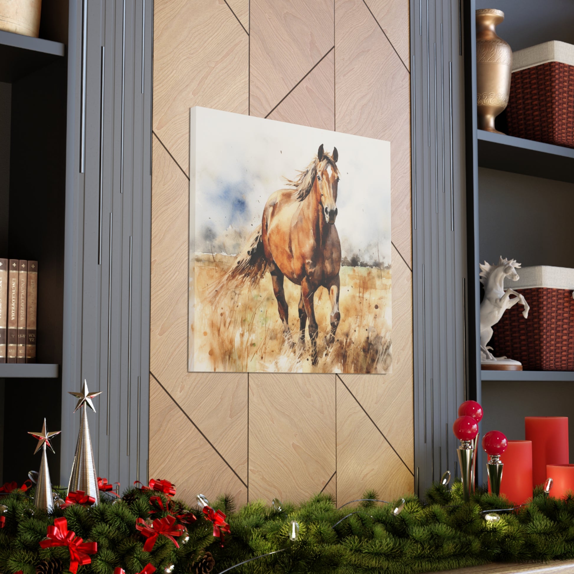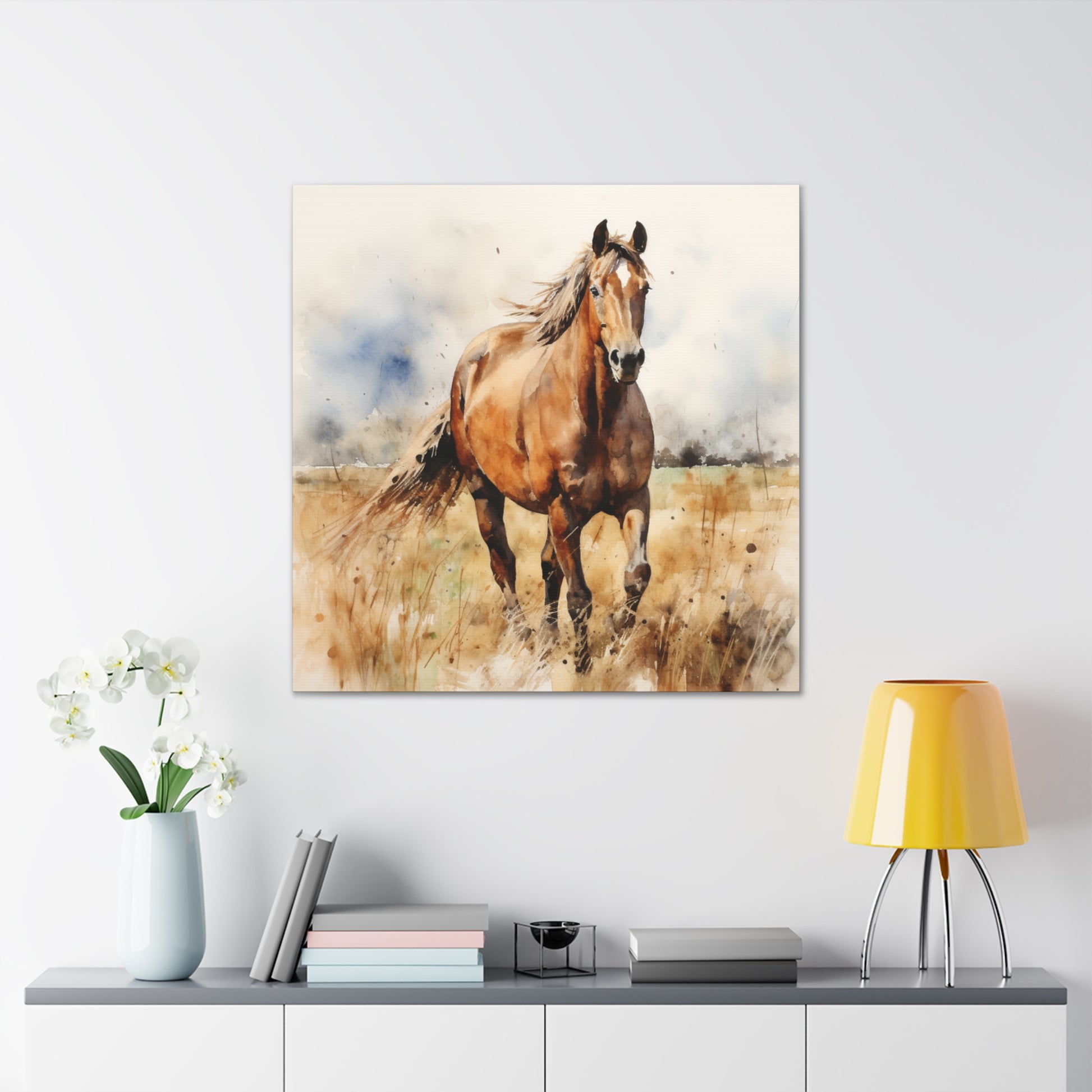 This beautiful hand-painted canvas art features an elegant and haunting horse in a lush field of wildflowers. The intricate details of the watercolor painting will bring a calming and serene atmosphere to any room. This canvas is perfect for any home wall décor. Brighten up your space with this unique and gorgeous piece of art today! #art #canvasart #horse #watercolor #home #decor #interiors #nature #wildflowers #calming #serene #unique