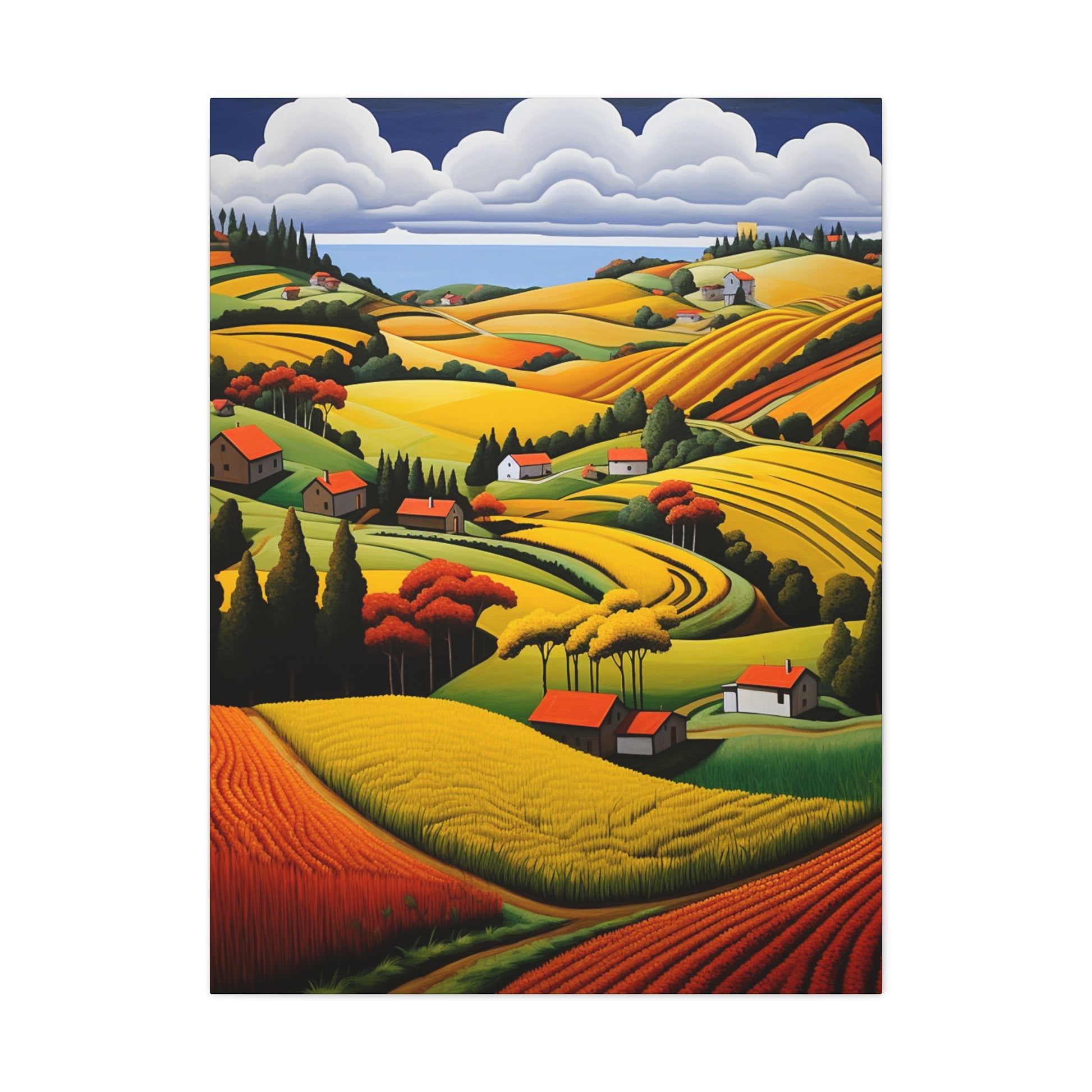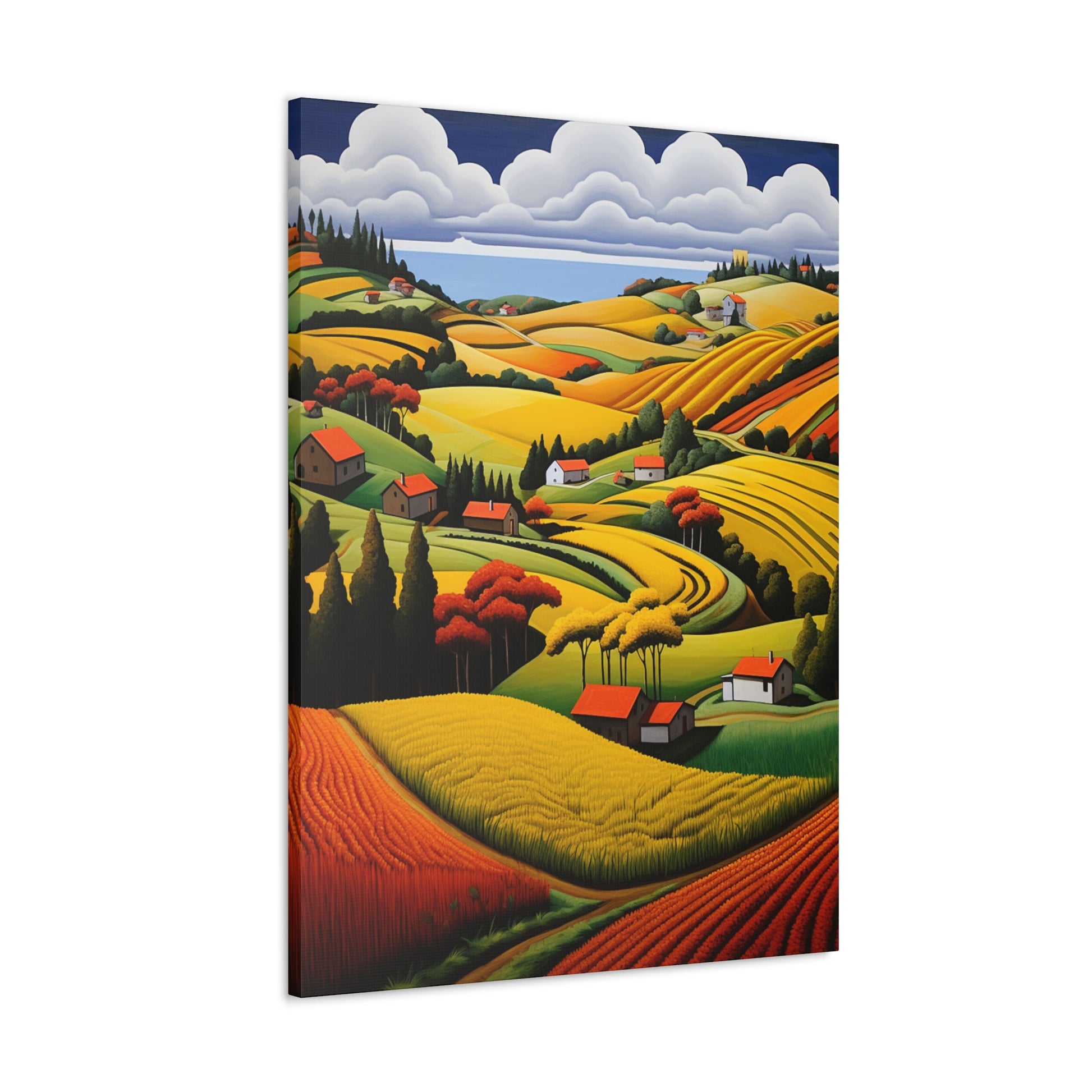 This countryside canvas features a vivid 3:4 design, depicting a tranquil farm resting in a lush green meadow. Its colors are bright and sunny yet peaceful, allowing you to bring a part of nature’s beauty indoors. The bold and earthy hues create a great combination, making this a must-have item that will be the perfect addition to your walls. #home #decor #canvas #countryside #fields #green #meadow #vivid #greatcombination #earthyhues #tranquil