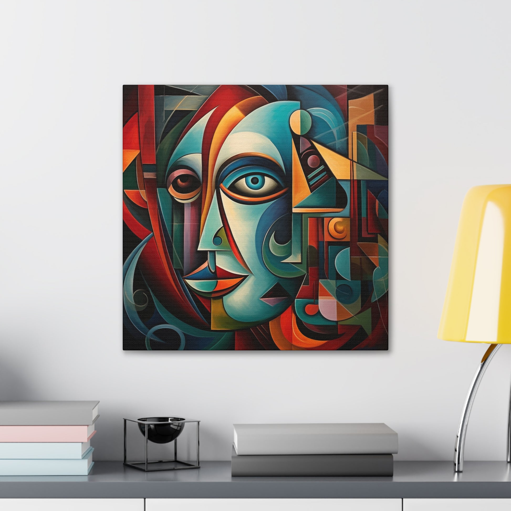 This stunning canvas of stunning cubism art is sure to liven the atmosphere of your home. This artful combination of color and texture is sure to make a statement in any space. Printed onto a thick canvas with archival inks, this canvas will last a lifetime and become a cherished piece of art for any wall. #cubism #artwork #canvas #wallart #statementpiece #colorful #texture #archivalinks #shophandmade #uniqueart #homedecor